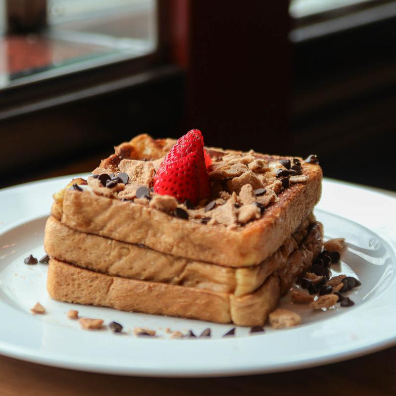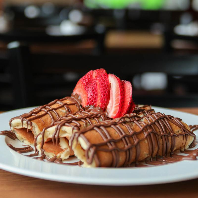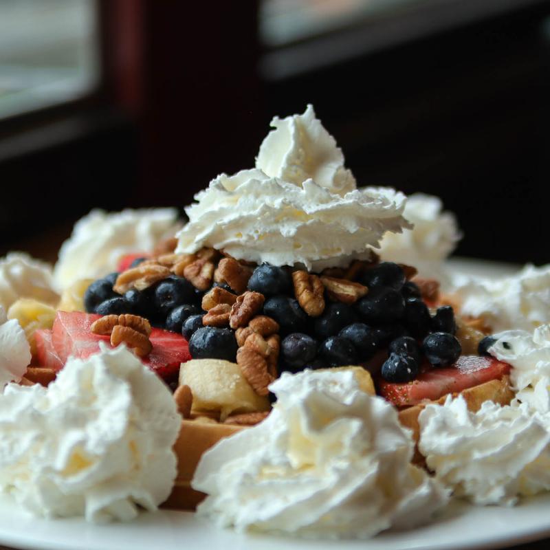Served with breakfast syrup • Ham, Bacon, Sausage or Canadian Bacon +$5.99 | Fresh Banana +$2.49 | Fresh Strawberries +$3.49 | *Two Eggs +$3.49